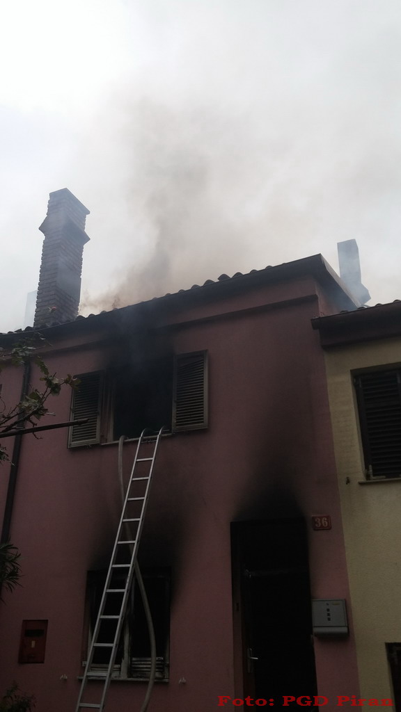 Ob 8h smo bili obveščeni o goreči hiši na Rozmanovi ulici v Piranu.