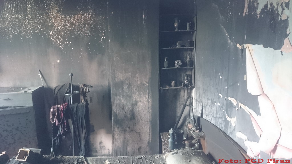 V požaru je bila hudo opečena starejša oseba, katero so prepeljali v SB Izola.